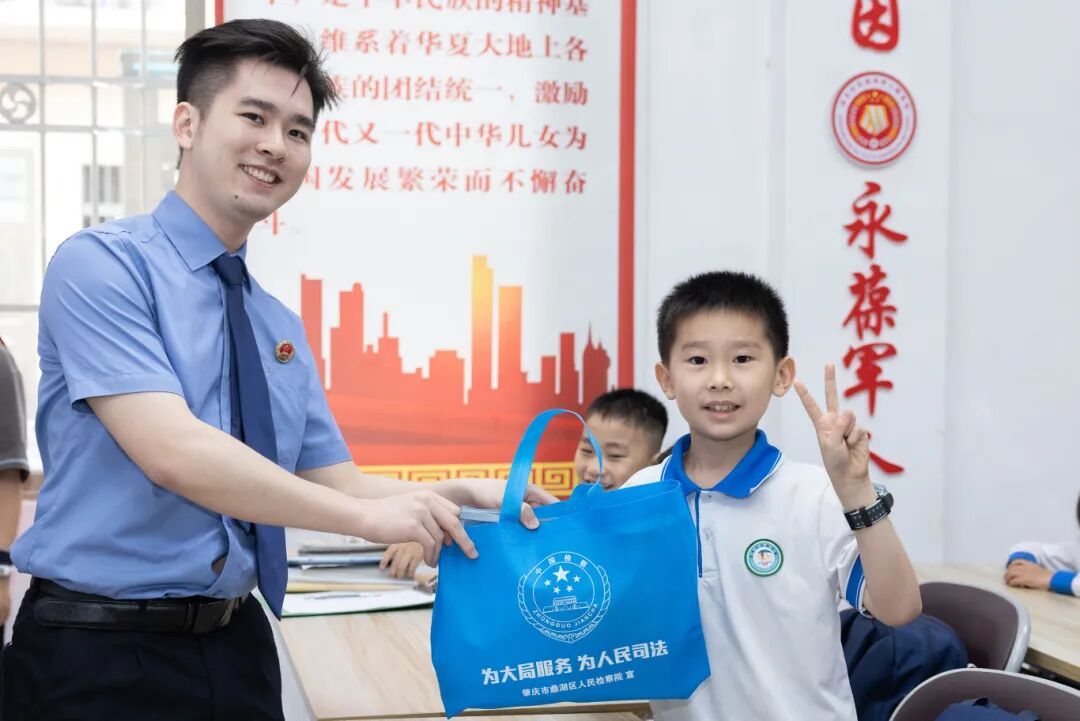 “我知道,不能随便拍摄军事基地、装备的照片!”“我还知道,发现有人打听国家秘密时,我会拨打12339!”课堂进入互动问答环节,孩子们积极思考、踊跃发言,纷纷表达对国家安全知识的理解和课堂学习体会,现场反响热烈。检察干警也随即为孩子们送去了学习文具等“定制”法治礼包。